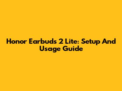 Honor Earbuds 2 Lite: Setup And Usage Guide