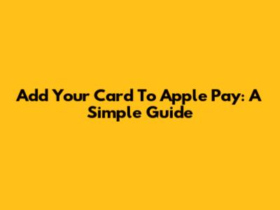 Add Your Card To Apple Pay: A Simple Guide