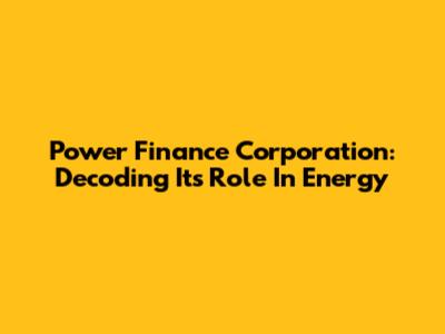 Power Finance Corporation: Decoding Its Role In Energy