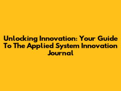 Unlocking Innovation: Your Guide To The Applied System Innovation Journal