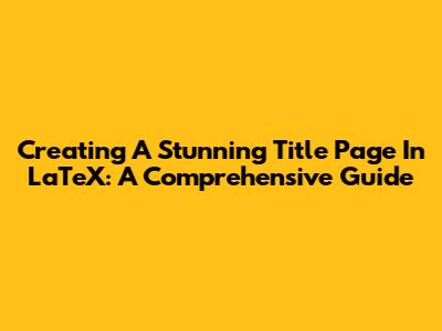 Creating A Stunning Title Page In LaTeX: A Comprehensive Guide