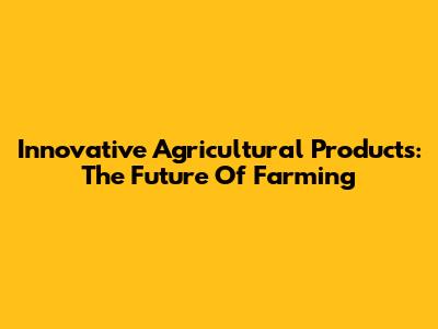 Innovative Agricultural Products: The Future Of Farming
