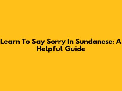 Learn To Say Sorry In Sundanese: A Helpful Guide