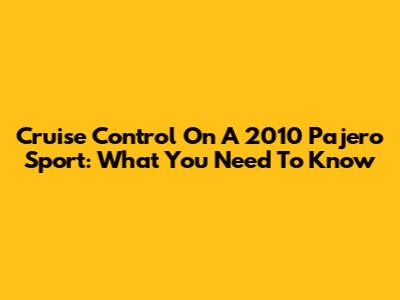 Cruise Control On A 2010 Pajero Sport: What You Need To Know