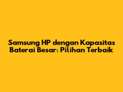 Samsung HP dengan kapasitas baterai besar adalah pilihan yang sangat tepat bagi kalian yang membutuhkan HP dengan daya tahan baterai yang lama. Dengan berbagai pilihan model yang tersedia, kalian bisa memilih HP yang sesuai dengan kebutuhan dan budget. Jangan lupa untuk selalu merawat baterai HP dengan baik agar umurnya lebih panjang dan kinerjanya tetap optimal. Dengan begitu, kalian bisa menikmati pengalaman menggunakan HP yang lebih nyaman dan efisien tanpa perlu khawatir kehabisan daya di tengah aktivitas penting.