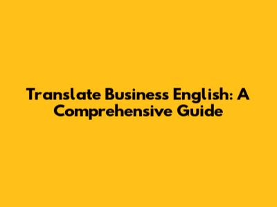 Translate Business English: A Comprehensive Guide