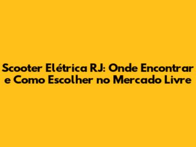 Scooter Elétrica RJ: Seu Guia Completo No Mercado Livre