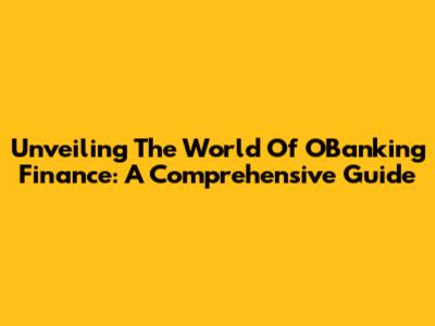 Unveiling The World Of OBanking Finance: A Comprehensive Guide