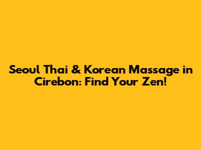 Seoul Thai & Korean Massage In Cirebon: Find Your Zen!