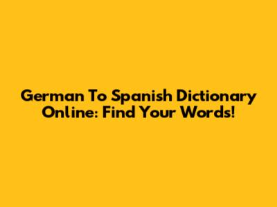 German To Spanish Dictionary Online: Find Your Words!