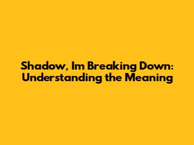 Hey guys! Ever heard a phrase that just sticks in your head, and you can't quite figure out what it means? Today, we're diving deep into the phrase "Shadow, I'm breaking down." It's a line that's popped up in various songs, movies, and even everyday conversations, leaving many of us scratching our heads. So, let’s break it down piece by piece and get a solid understanding of what it really means. Think of this phrase as a multifaceted gem – each angle reveals a different layer of meaning, influenced by context, emotion, and personal interpretation.