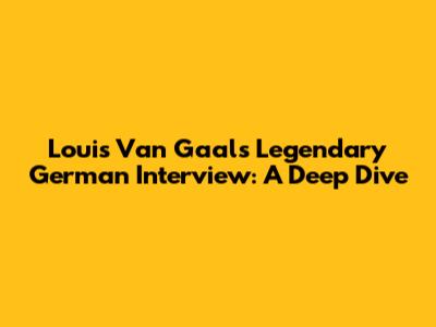 Louis Van Gaal's Legendary German Interview: A Deep Dive