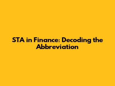 Hey guys! Ever stumbled across the abbreviation STA in the finance world and scratched your head wondering what it means? You're not alone! Finance is full of acronyms and abbreviations that can sound like a whole different language. Let's break down what STA stands for in finance, explore its various meanings, and provide some real-world context to help you understand how it's used. So, let’s dive in and demystify this financial term.