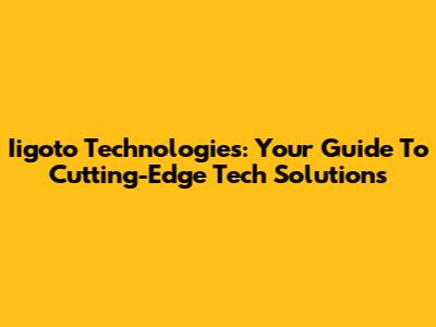 Iigoto Technologies: Your Guide To Cutting-Edge Tech Solutions