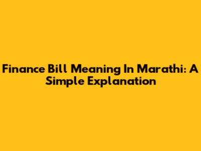 Finance Bill Meaning In Marathi: A Simple Explanation