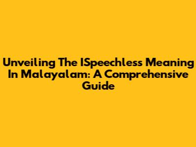 Unveiling The ISpeechless Meaning In Malayalam: A Comprehensive Guide