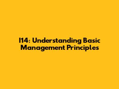 I14: Understanding Basic Management Principles