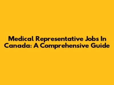 Medical Representative Jobs In Canada: A Comprehensive Guide