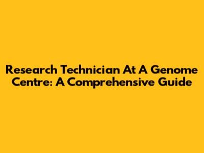 Research Technician At A Genome Centre: A Comprehensive Guide