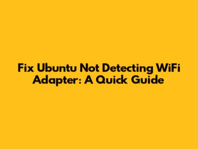 Fix Ubuntu Not Detecting WiFi Adapter: A Quick Guide