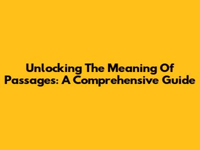 Unlocking The Meaning Of Passages: A Comprehensive Guide