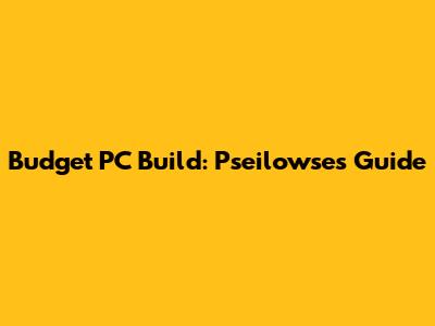 Budget PC Build: Pseilowse's Guide