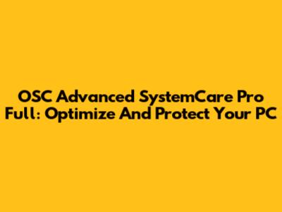 OSC Advanced SystemCare Pro Full: Optimize And Protect Your PC