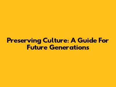 Preserving Culture: A Guide For Future Generations