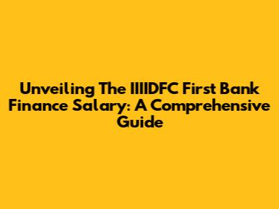 Unveiling The IIIIDFC First Bank Finance Salary: A Comprehensive Guide