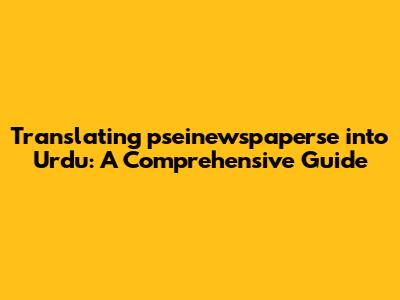 Understanding how to translate specific terms, like 'pseinewspaperse,' can be super useful, especially when you're trying to bridge different languages and cultures. In this article, we're diving deep into how you can accurately translate 'pseinewspaperse' into Urdu. We'll explore potential meanings, look at different translation approaches, and provide examples to ensure you've got a solid grasp of the topic. Whether you're a student, a language enthusiast, or just curious, this guide will help you navigate the nuances of translating this term effectively.