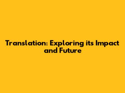 The Future of Translation: Technology and Beyond