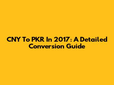 CNY To PKR In 2017: A Detailed Conversion Guide