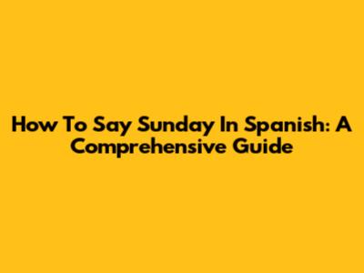 How To Say Sunday In Spanish: A Comprehensive Guide