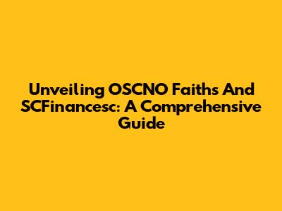 Unveiling OSCNO Faiths And SCFinancesc: A Comprehensive Guide