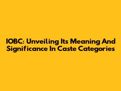 IOBC: Unveiling Its Meaning And Significance In Caste Categories