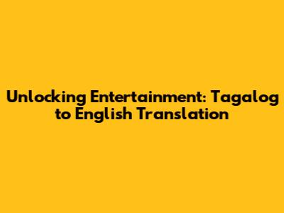 Understanding the Importance of Tagalog to English Translation in Entertainment