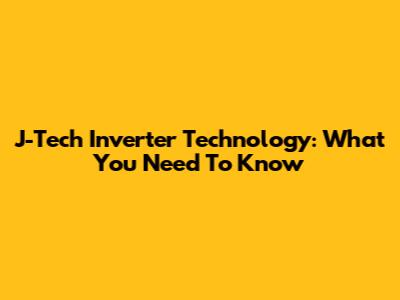J-Tech Inverter Technology: What You Need To Know