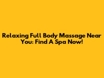 Relaxing Full Body Massage Near You: Find A Spa Now!