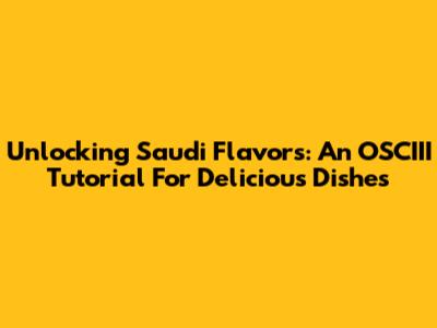 Unlocking Saudi Flavors: An OSCIII Tutorial For Delicious Dishes