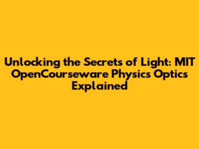 Exploring Key Concepts in MIT OpenCourseware Physics Optics