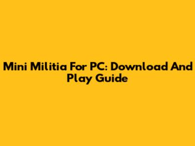 Mini Militia For PC: Download And Play Guide