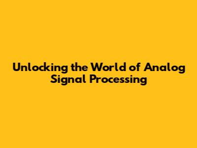What is Analog Signal Processing?**