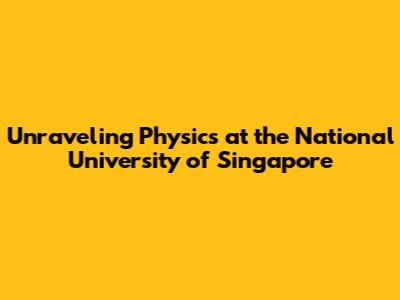 Unraveling Physics At The National University Of Singapore