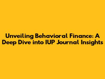 Now, let's explore the IUP Journal of Behavioral Finance. This journal is a valuable resource for anyone interested in the intersection of psychology and finance, providing a platform for researchers and practitioners to share their knowledge and insights. The journal covers a wide range of topics, offering a comprehensive view of how people make financial decisions. Let's delve into what makes this journal so special.