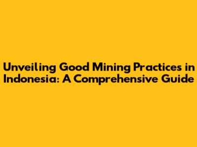 Hey guys! Ever wondered about the ins and outs of good mining practices in Indonesia? Well, you're in the right place! Mining is a massive industry globally, and Indonesia is a significant player, boasting a wealth of natural resources. But with great resources comes great responsibility, right? That's where good mining practices come into play. These practices aren't just about digging up stuff; they're about doing it the right way – safely, sustainably, and ethically. In this article, we'll dive deep into what these practices entail, why they're super important, and how Indonesia is working to implement them. So, buckle up, and let's get started on this exciting journey into the world of responsible mining in the archipelago!