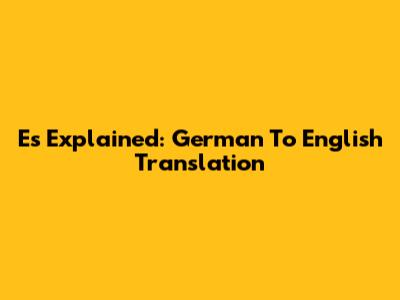 Es Explained: German To English Translation