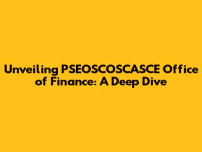 Hey there, finance enthusiasts! Ever heard of the PSEOSCOSCASCE Office of Finance? If not, no worries, you're in the right place. We're about to embark on a deep dive, exploring everything from its core functions to its impact on the financial landscape. Buckle up, because we're about to get into the nitty-gritty of this important institution. This article is your go-to guide, breaking down the complexities and making them easy to understand. We'll be covering its purpose, its role, and why it matters in the grand scheme of things. Ready? Let's jump in!