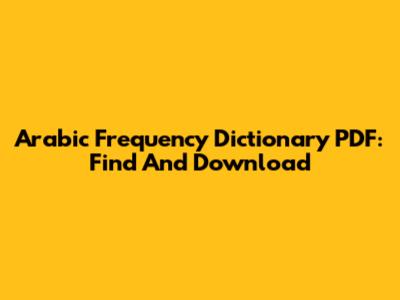 | Read Also : Arabic Frequency Dictionary PDF: Find And Download -