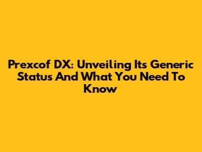 Prexcof DX: Unveiling Its Generic Status And What You Need To Know