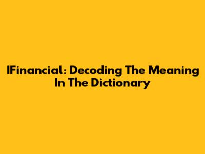 IFinancial: Decoding The Meaning In The Dictionary